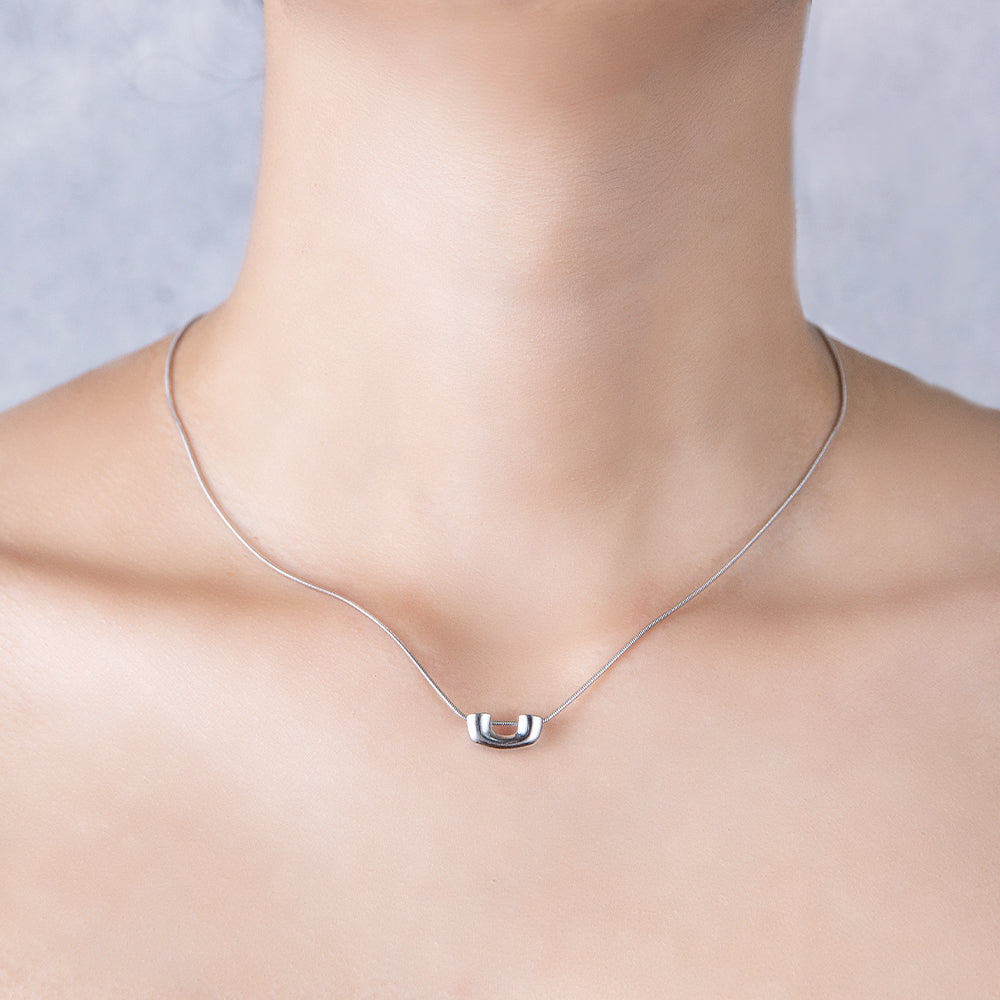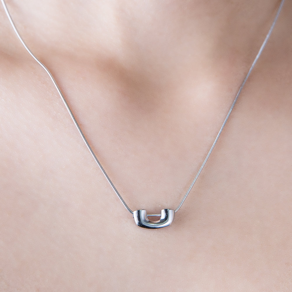 Este collar presenta un diseño elegante y minimalista con un dije en forma de U en una cadena tipo box chain. La cadena box chain es una cadena robusta y elegante que aporta un toque de modernidad al collar. Este collar está hecho de acero inoxidable 316 y tiene un acabado pulido que le da un brillo excepcional. Este collar es antialérgico y perfecto para pieles sensibles.