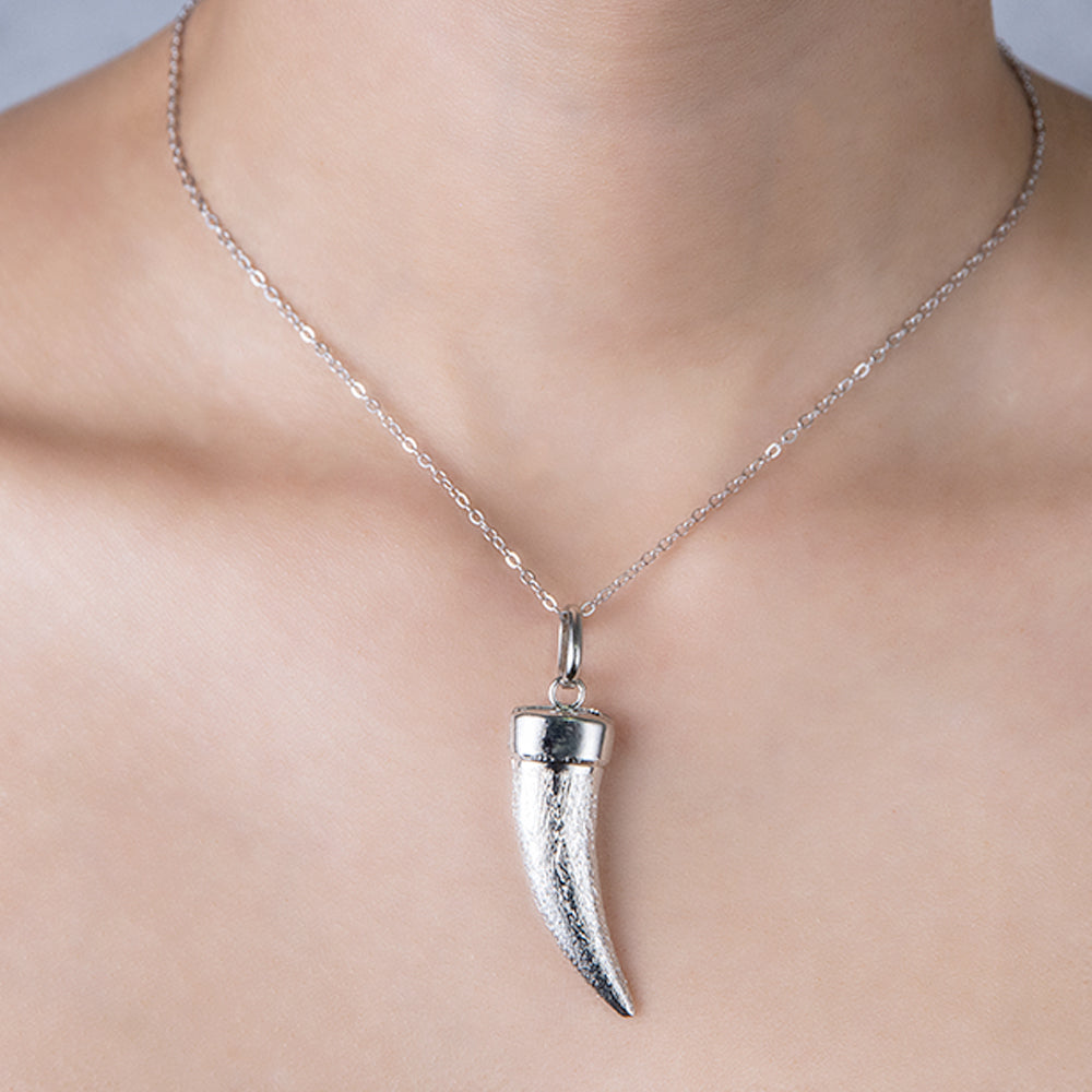 Este collar combina un diseño atrevido y elegante con un dije en forma de colmillo plateado, ideal para destacar tu esencia rebelde. La cadena tipo cable aporta robustez y versatilidad, mientras que el dije, con su textura brillante, añade un toque único y sofisticado. Fabricado en acero inoxidable 316, este collar es resistente, antialérgico y perfecto para pieles sensibles.