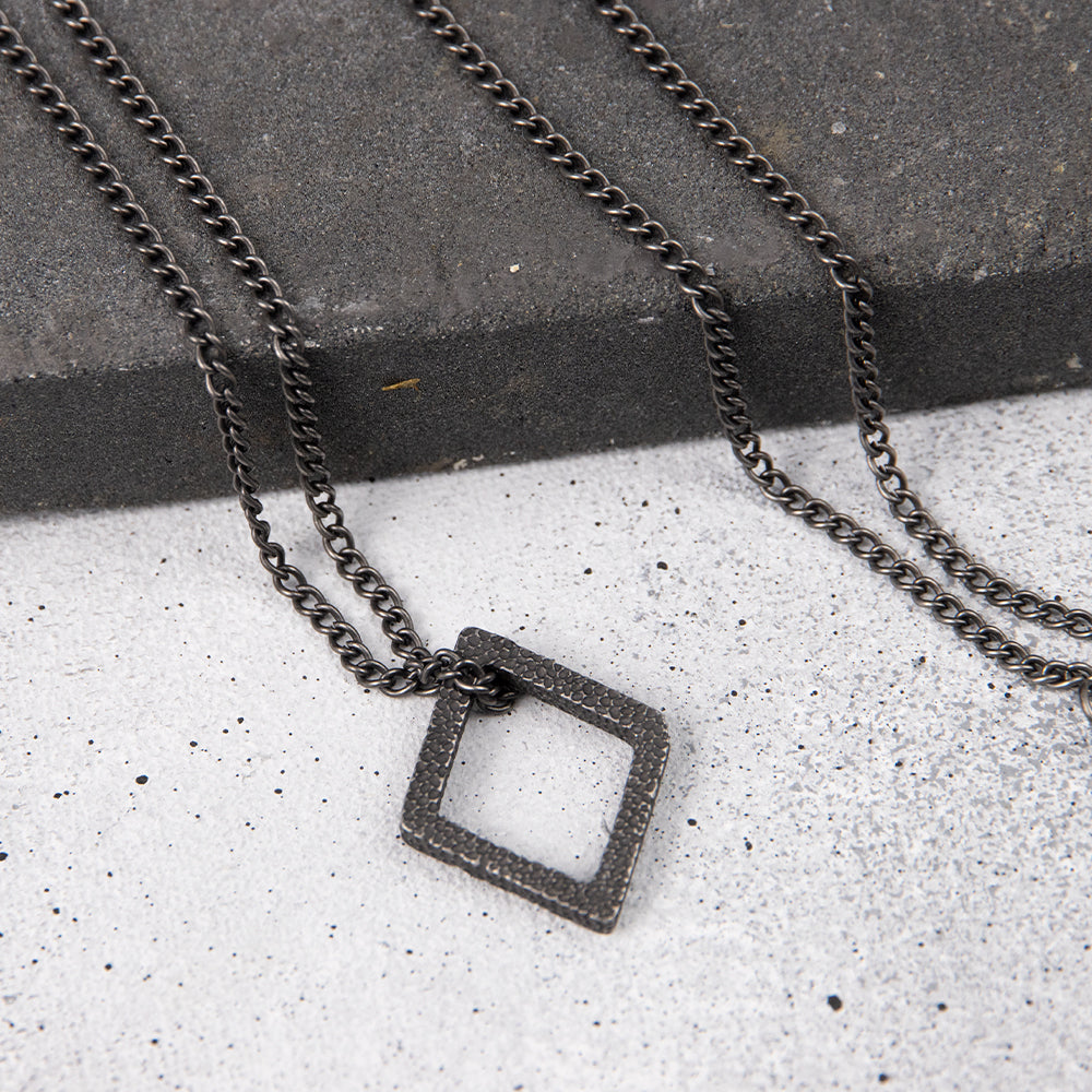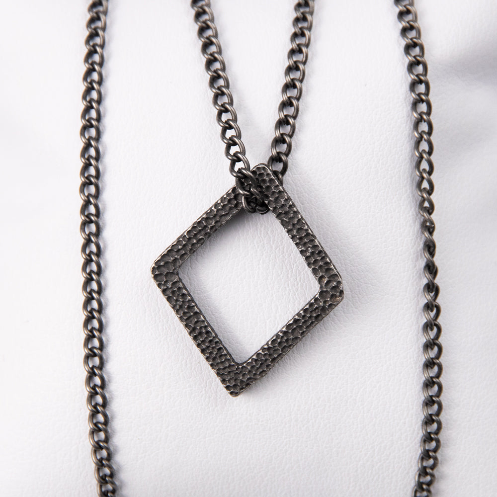 Es un emblema de sueños, destino y conexión con el infinito. Su cadena tipo envejecido le otorga un carácter único y atemporal, mientras que el dije, en forma de estrella cuadrada o diamante, de contorno definido y textura detallada, representa guía y equilibrio. Fabricado en acero inoxidable 316L, combina estilo, durabilidad y un simbolismo profundo que lo convierte en un amuleto ideal para quienes buscan piezas con historia y propósito.