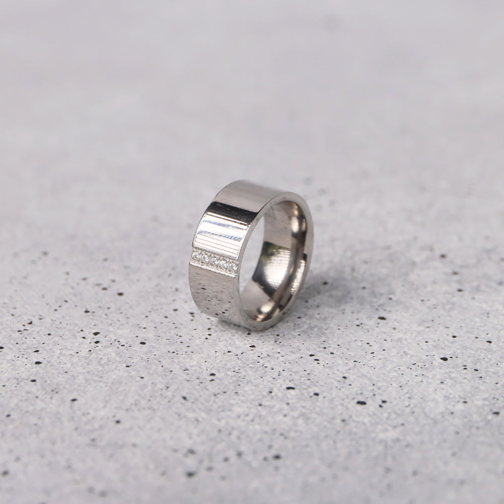 Símbolo de Progreso y Alineación: El tono plateado, asociado con la claridad mental y la serenidad, se fusiona con las piedras tipo diamante, que simbolizan pureza y propósito. La alineación vertical sugiere un avance continuo, representando la importancia de caminar hacia adelante sin perder la esencia en el trayecto. El Anillo Magistral invita a quienes buscan mantenerse alineados con su propósito, apreciando cada etapa como parte de un todo significativo.